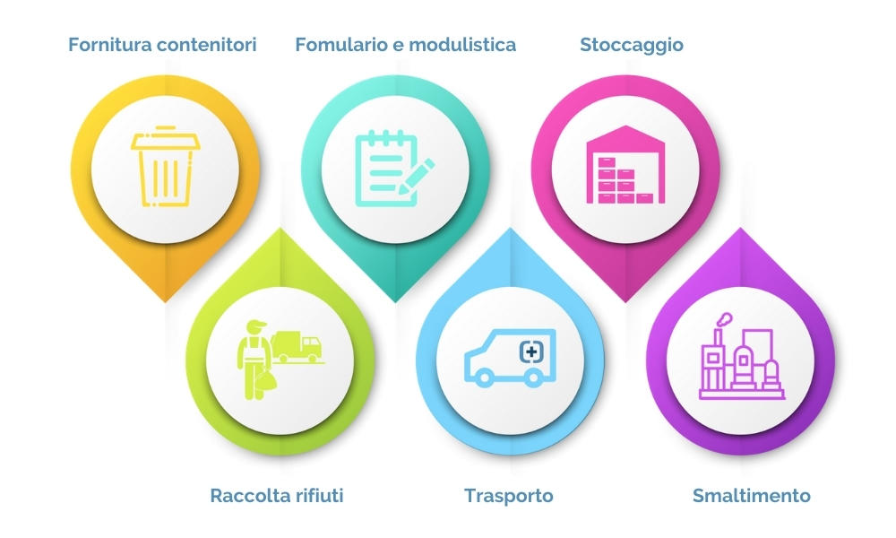 Ci occupiamo di ogni fase del processo di gestione del rifiuto sanitario.